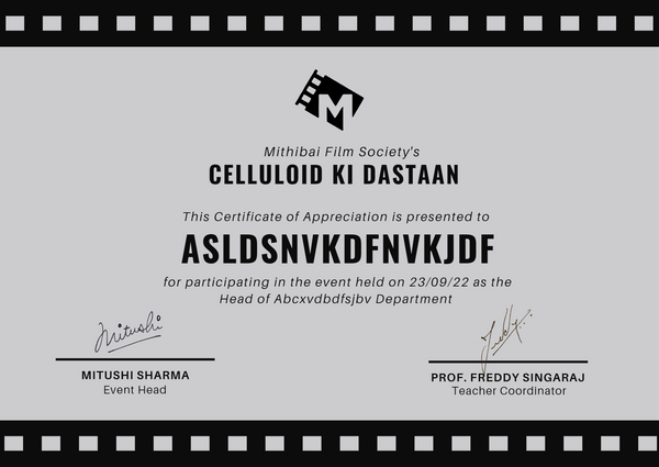 Mithibai Film Society Certificate